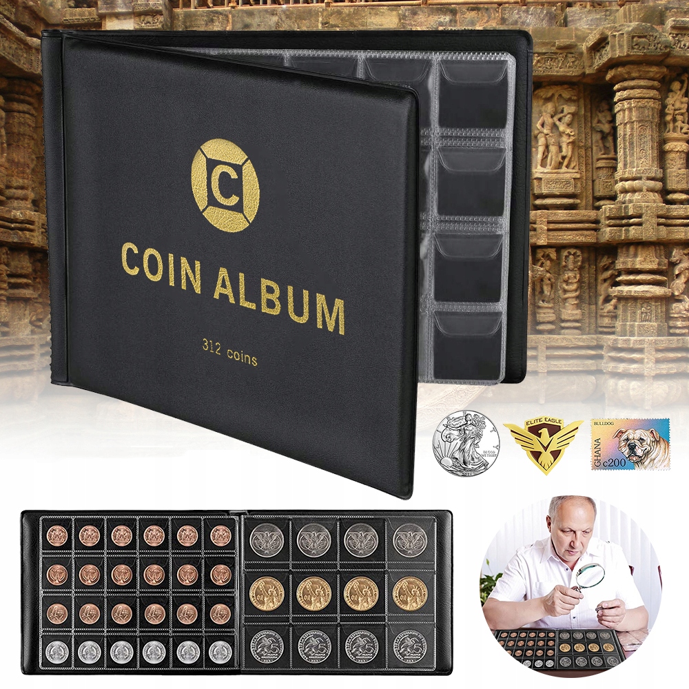 -тримач монет для колекціонерів, підходить для всіх видів старих монет: два різних розміри кишеньок для золотих монет різних розмірів . Альбом для монет розміром 30 мм x 30 мм, 10 сторінок з 240 кишенями та 46 мм x 46 мм, 6 сторінок з 72 кишені, бокова кишеня для монет підходить для 20/25/27/30/38/41/41,2/46 монет.