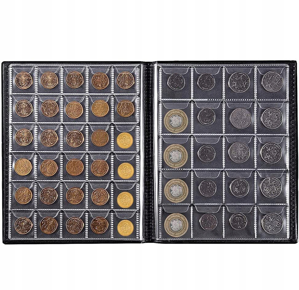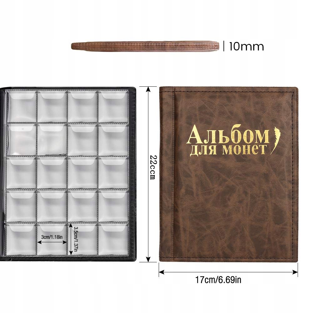 - 【Розміри】: приблизно 22 x 17 x 1 см, 10 сторінок містять 250 монет, розміри окремих кишень приблизно 3,5 x 3 см.