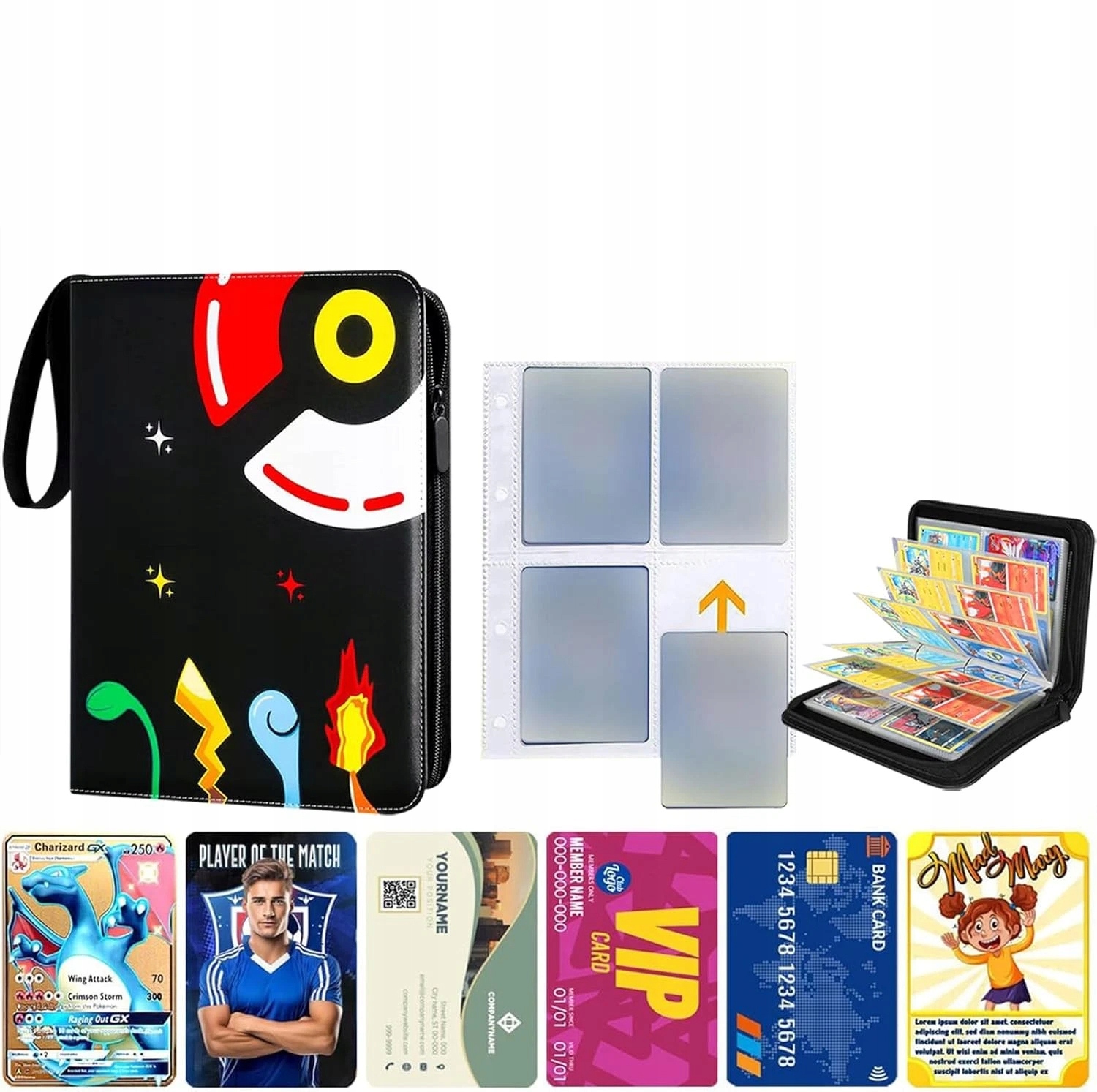 АЛЬБОМ З КАРТАМИ POKEMON 900 МІСЦЬ 4 КИШЕНІ 50 СТОРІНОК ПЕРЕНОСНИЙ З РЕМЕНЕМ 34x28x5 см