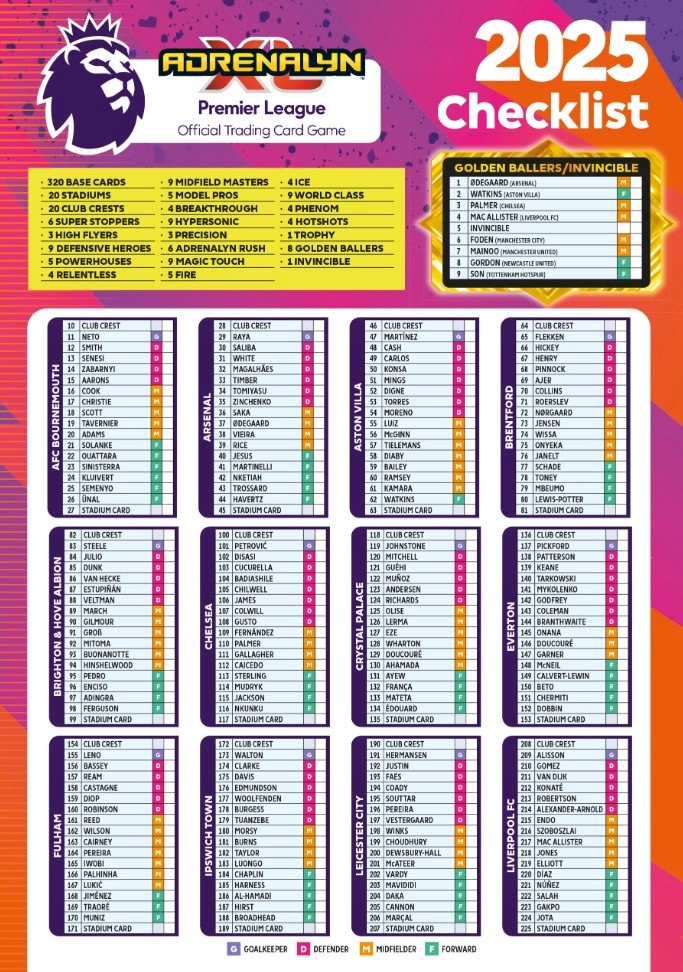 Panini з радістю повідомляє про випуск нового видання офіційної колекції карток Premier League Adrenalyn XL™ 2025. Тут ви знайдете всі клуби однієї з найкращих і найзахопливіших футбольних ліг у світі!
