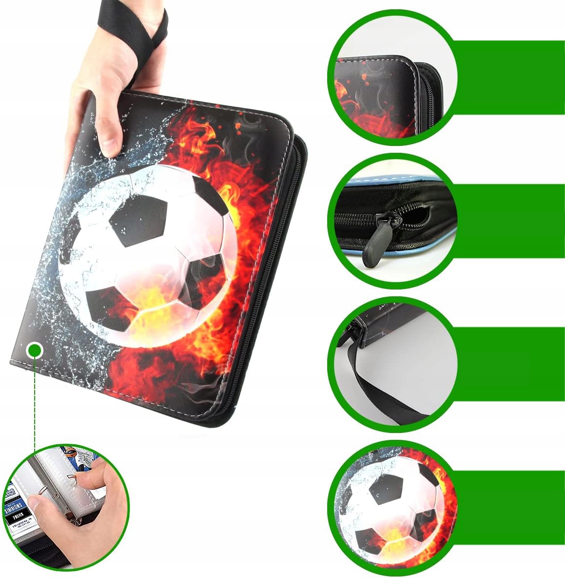 6,6 х 8,8 см . Картки з 480 кишенями сумісні зі стандартними картками розміру, такими як футбольні карти, бейсбольні картки та інші набори ігрових карт. (Картки колектора не знаходяться в межах доставки)
