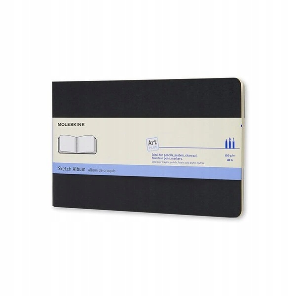 skicář vhodný na kresby, skici та malby. Jsou vyrobena списки kvalitního papíru slonovinové barvy s gramáží 120 g/m2 a dají se snadno vytrhnout. Mají černou kartonovou vazbu s viditelným švem. Uvnitřu je poznámek a leták s isystií moleskine.