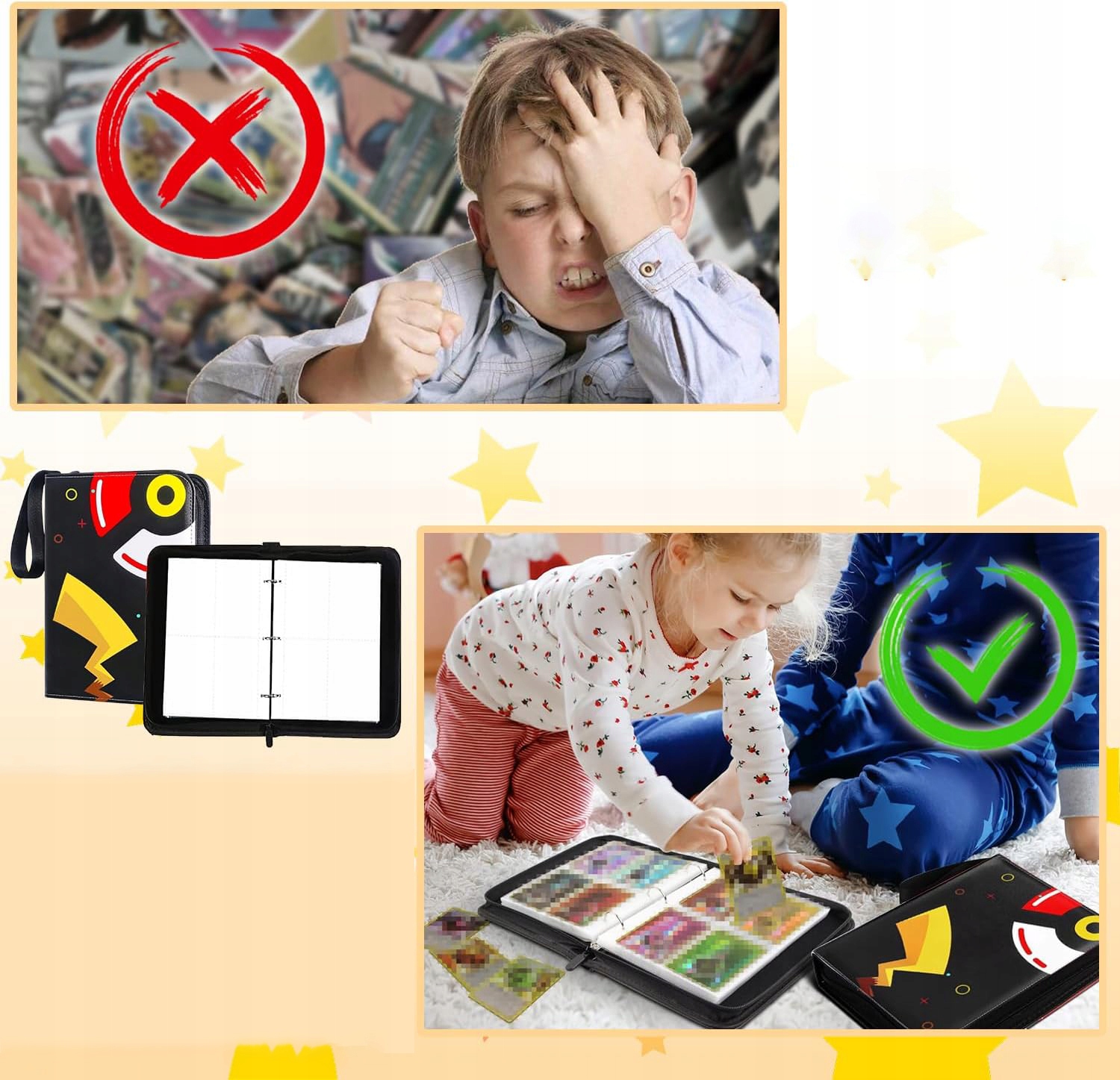 ⭐️ - Містить 50-сторінкову колоду з 4 кишенями,кожна кишеня вміщує 8 карт, 4 спереду та 4 ззаду, і має достатньо місця для впорядкування всіх ваших карток загалом 400 карткових ігор з колекційними картками.