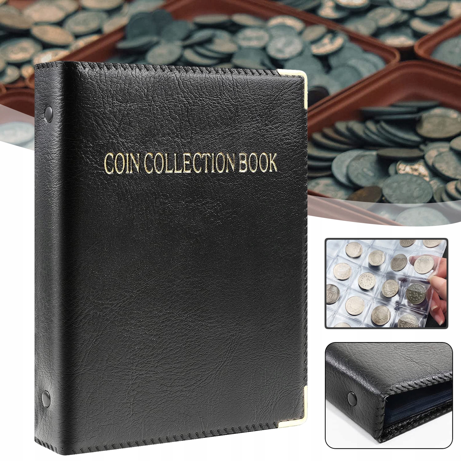 ALBUM DO KOLEKCJONOWANIA MONET, 480 KIESZENI, SKÓRZANA OKŁADKA, NA MONET
