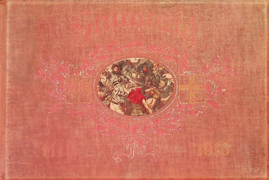 Книга приурочена до 500-річчя найбільшої битви середньовічної Європи. Тоді, напередодні початку Першої світової війни, ця річниця мала для поляків велике значення: вона була символом перемоги над німцями. — Альбом виданий у 1910 році в Познані до 500-річчя Грюнвальдських урочистостей, він, безсумнівно, має історичну цінність. Видавцем альбому була польсько-католицька Księgarnia Nakładowa Zdzisław Rzepecki i Spółka, одна з небагатьох видавництв, яка діяла вже у міжвоєнний період. Здзіслав Ржепецький розгорнув видавничу діяльність, видаючи власні декоративні альбоми патріотичного змісту, наприклад «Альбом ювілейний Грюнвальд», який, за деякими даними, був конфіскований прусською цензурою. Альбом підготував Яслав із Браткова, псевдонім Яна Братковського. Книга містить види з поля Грюнвальдської битви, зроблені за вказівками Теофіла Ржепніковського з Любави, повстанця та громадського діяча. Він брав участь у Січневому повстанні, діяв на Померанії та Вармії, а в 1918-1963 рр. прославився як комендант таємної Організації військ Гданської Поморії, яка готувала повстання на Вармії та Мазурах. Привертають увагу шість ескізів до так званої кругової картини «Грюнвальдська битва», виконаної польськими художниками Яном і Тадеушем Стиками, які також є співавторами твору. Альбом містить репродукції картин, монети, малюнки обладунків, гравюри та добре збережену карту тевтонських замків, виконану Здзіславом Ржепецьким. В альбомі є ще один раритет: фотографії старих замків, зроблені Каролем Жепецьким у 1905 році. Кароль був родичем Здзіслава і після його смерті деякий час керував видавництвом. Ймовірно, він приїхав у ці краї з патріотичною місією. Як і більшість мешканців Познані, він підтримував поляків, які проживали тут, у їхніх прагненнях до свободи. Під час перебування він фотографував замки і вносив їхні «фотовідображення» до ювілейного альбому.