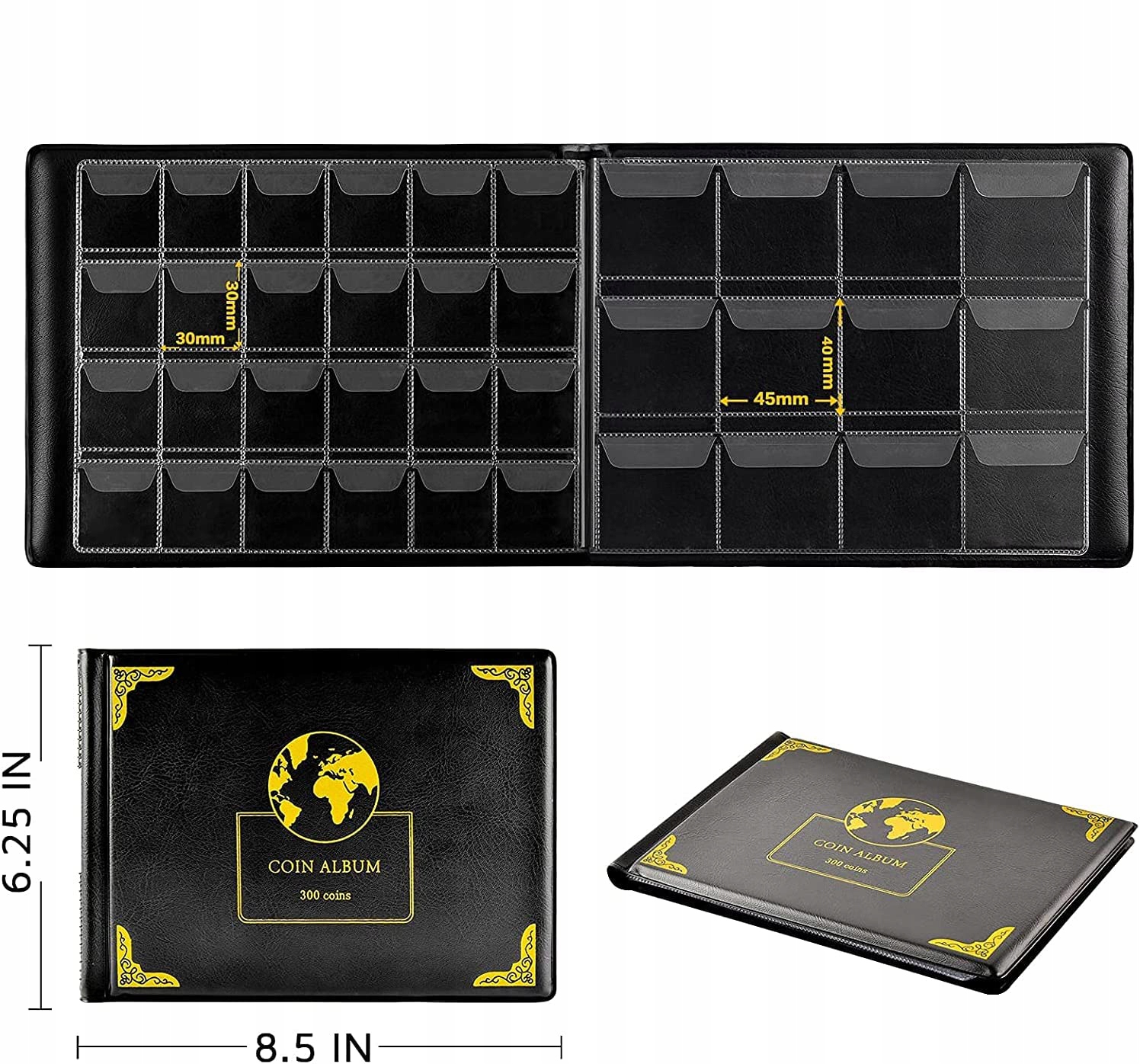 Місткість і розмір альбому для монет: 300 Прозорий органайзер для монет Книжковий простір Обкладинка для монет Penny Сумка має велику місткість для зберігання колекційних монет від 30 до 46 мм (10 кишень для монет на 240 кишень для 30-мм монет; 5-сторінкова колекція монет на 60 кишень 46 , монети 30 мм, розмір приблизно 1,2 x 1,2 дюйма / 3,1 x 3,1 см; розмір сумки 46 мм становить приблизно 1,9 x 1,6 дюйма / 4,9 x 4,2 см; Загалом 300 кишень вміщують 300 матеріалів для колекціонування монет.