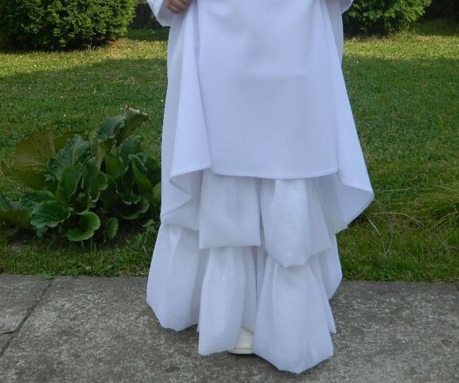 - Альба була прикрашена білою окантовкою та квітами на поясі