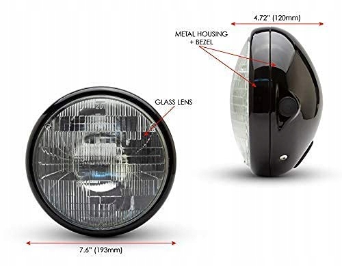 Універсальна чорна сталева фара діаметром 19 см. Ця міцна фара високої якості ідеально підходить для модернізації або просто заміни фар вашого мотоцикла. Це класичний дизайн, який не виходить з моди, він чорний і згодом надасть йому патини. 55W також яскравий, має герметичний промінь і повністю металевий корпус. Колірна температура світла становить 5000K і створює чисте біле світло, а не жовто-біле, як більшість стандартних ламп. Це робить його добре розробленим для кафе-рейсерів, скремблерів, шредерів, крузерів, трюк-байків, вуличних бійців, проектних мотоциклів тощо...