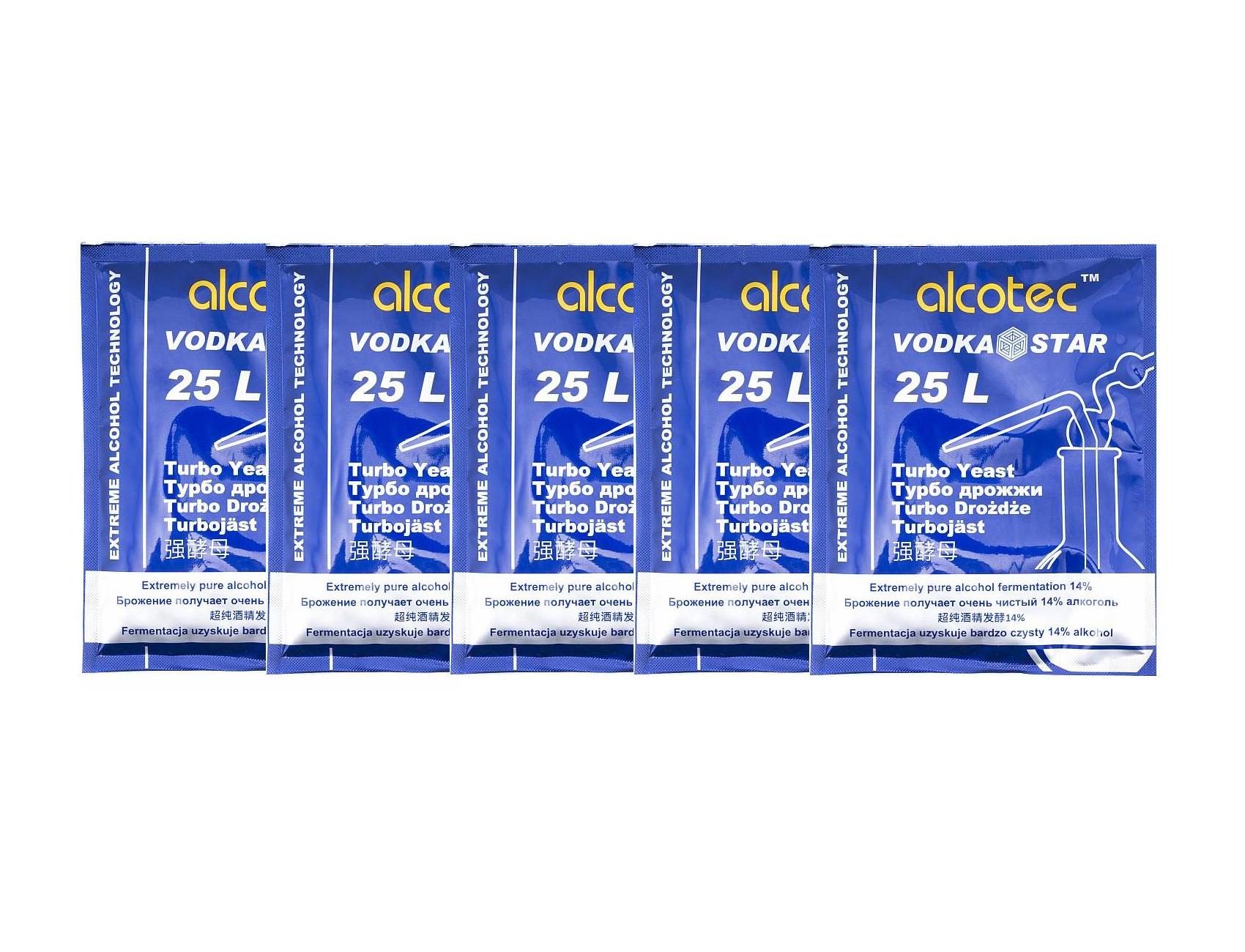 ALCOTEC VODKA STAR Turbo - це суміш спеціально відібраних спиртових дріжджів, дріжджових поживних речовин, вітамінів і мікроелементів, призначена для швидкого бродіння цукрових сумішей. Використаний в них особливий вид дріжджів зменшує кількість небажаних продуктів бродіння. Отриманий спирт м'який і ніжний на смак, без неприємних запахів.