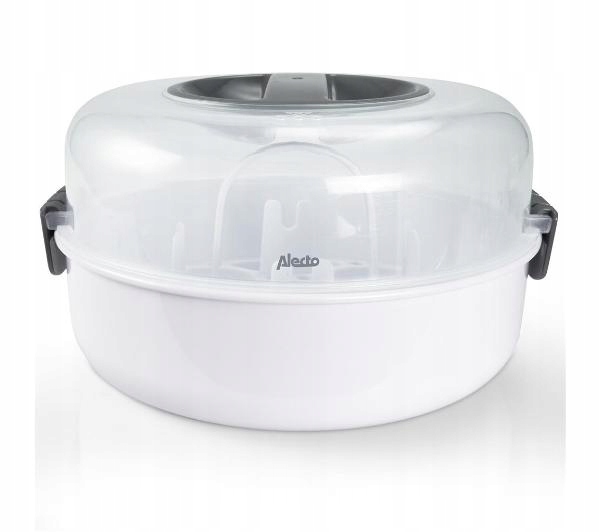 Стерилізація дитячих пляшок з парою продовжує термін експлуатації немовлят для немовлят порівняно з методом приготування у воді після використання. Стерилізатор виготовлений з пластику, який не містить BPA. Завдяки бічним дужкам ви можете безпечно закрити кришку та використовувати стерилізатор на подорожі як практичний контейнер для зберігання.
