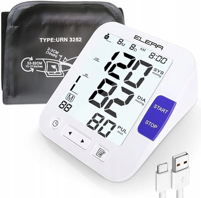- Дуже велика манжета: елери артеріальний тиск - це регульована велика манжета, яка відповідає плечу дорослого з окружністю від 32 до 52 см. Має функцію автозаводів та високу точність.