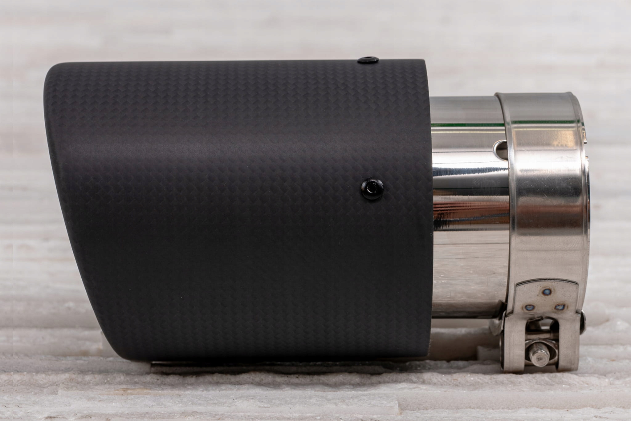 Сталевий наконечник вихлопу був розроблений для ідеального підкреслення природи автомобіля, поєднуючи спортивну силу з сучасною елегантністю. Ця модель відрізняється декоративною оболонкою, натхненною "вуглецем", відомим своєю міцністю. Завдяки структурі, стилізованій як вуглецеве волокно, елемент доповнює стиль автомобіля модним акцентом. Елемент був виготовлений з високоякісної нержавіючої сталі. Продукт характеризується високою стійкістю до пошкоджень, спричинених погодними умовами, хімічними речовинами тощо.