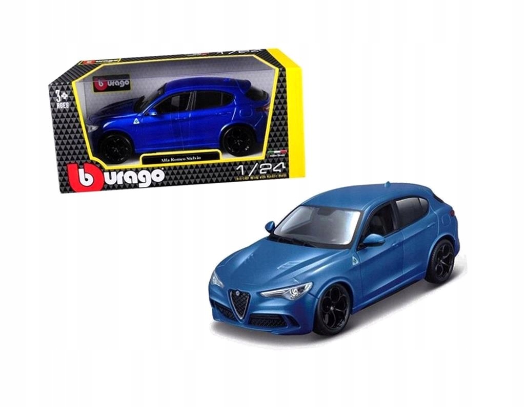 Модель автомобіля Alfa Romeo Stelvio Blue 1:24 BBURAGO Модель виконана з металу з пластиковою фурнітурою. Він має рухомі елементи