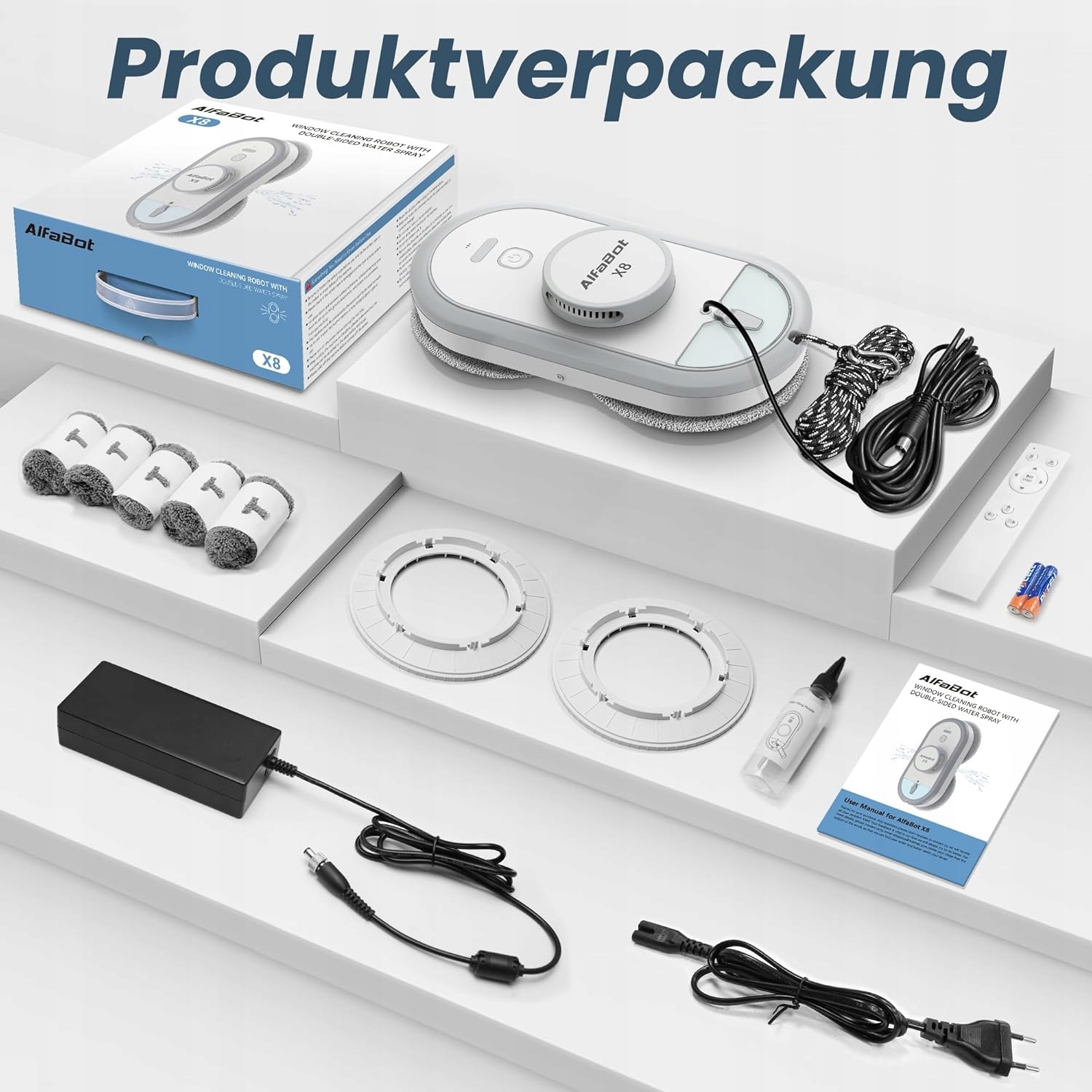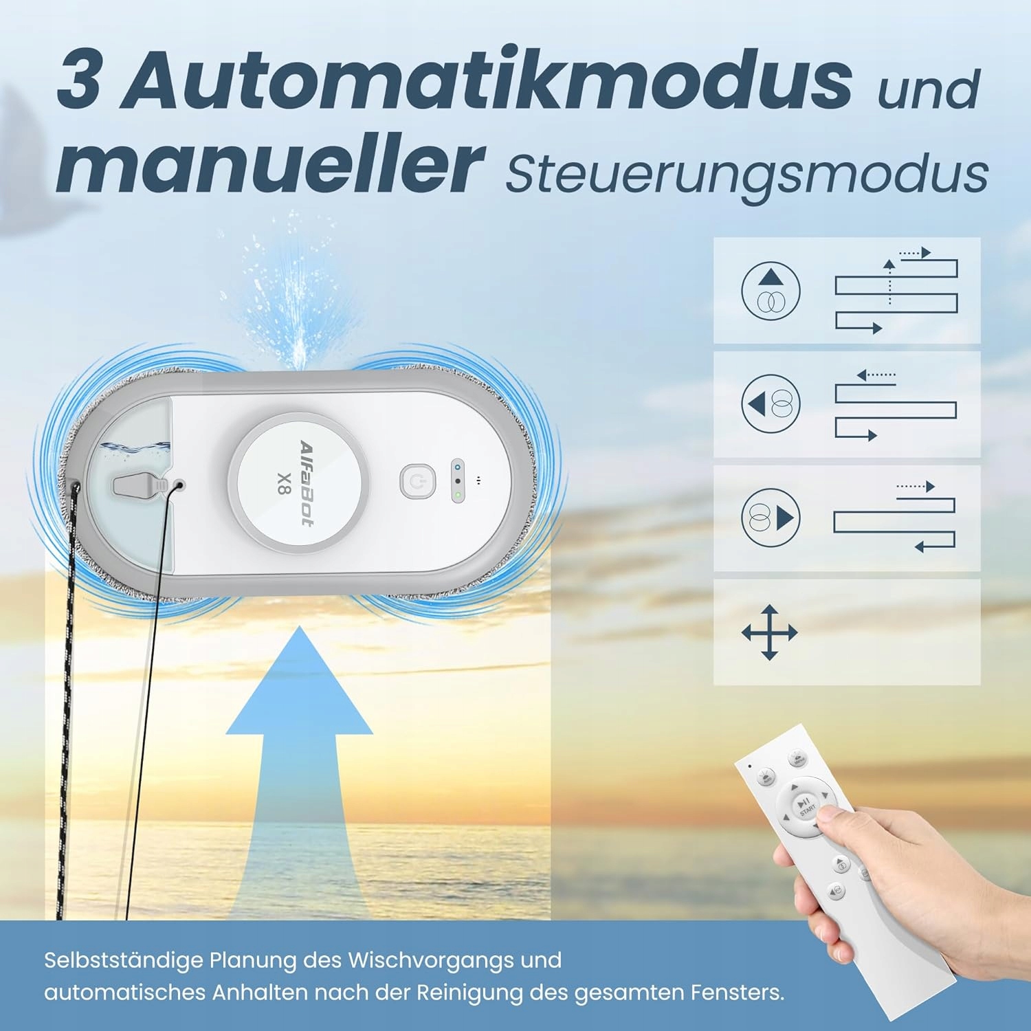 AlfaBot X8: Robot do mycia okien z automatycznym spryskiwaniem i pilotem