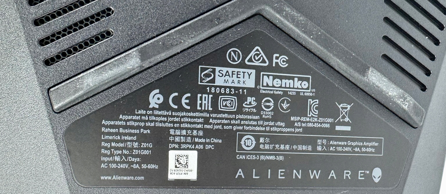 Alienware Graphics Amplifier Z01G Графічний підсилювач для ноутбука 3RPK4
