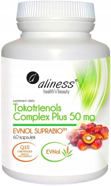EVNOL SUPRABIOTM збільшує всмоктування токотрієнолів до 300% у крові та їх накопичення в органах і демонструє найкращу біодоступність, підтверджену клінічними дослідженнями.ALINESS Tocotrienols Complex PLUS 50 мг: