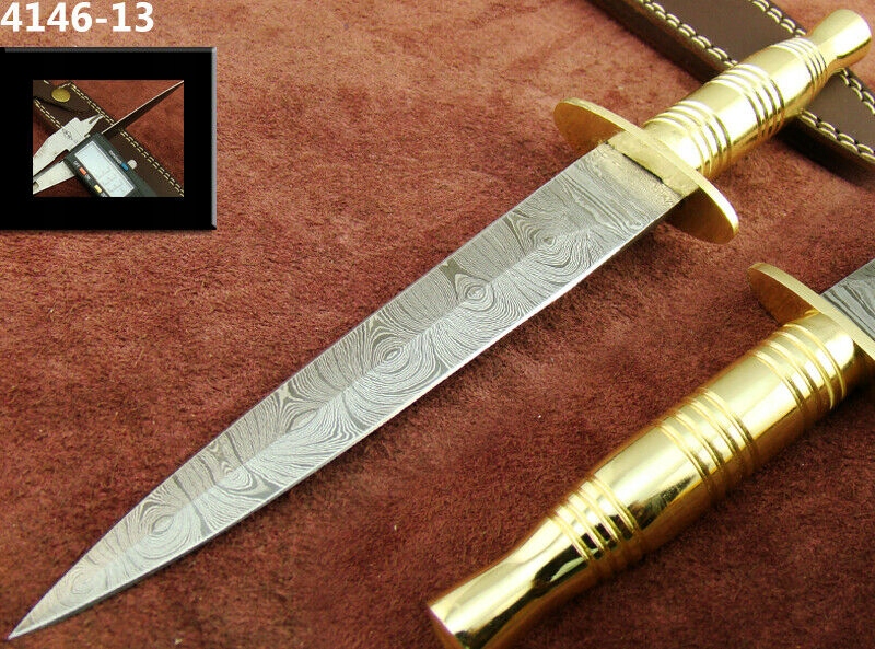 Це великий кинджалний ніж, натхненний кинджалами британських командос SAS. Лезо виготовлено з дамаської сталі.