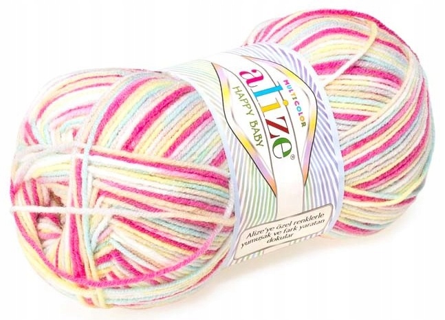 Alize Happy Baby Multicolor — цілорічна універсальна пряжа, яка ідеально підходить для звичайного дитячого в'язання. Його великою перевагою є дуже делікатний, високоякісний акрил з поліамідом та ефективність. Особливо рекомендую пряжу Happy Baby Multicolor для різних видів дитячого в'язання: светрів, шапок, суконь, ковдр і т. д. Мультиколор - це барвистий еквівалент одноколірної версії пряжі Happy Baby з такими ж параметрами. Тому ви можете сміливо поєднувати одноколірні та багатоколірні версії в одному виробі. Кольорові переходи в пряжі Multicolor короткі і несподівані, створюючи в роботі ефект меланжу. Я також рекомендую його людям з дуже ніжною, чутливою або схильною до алергії шкірою, тому що він не містить подразнюючої вовни та інших алергенних інгредієнтів.