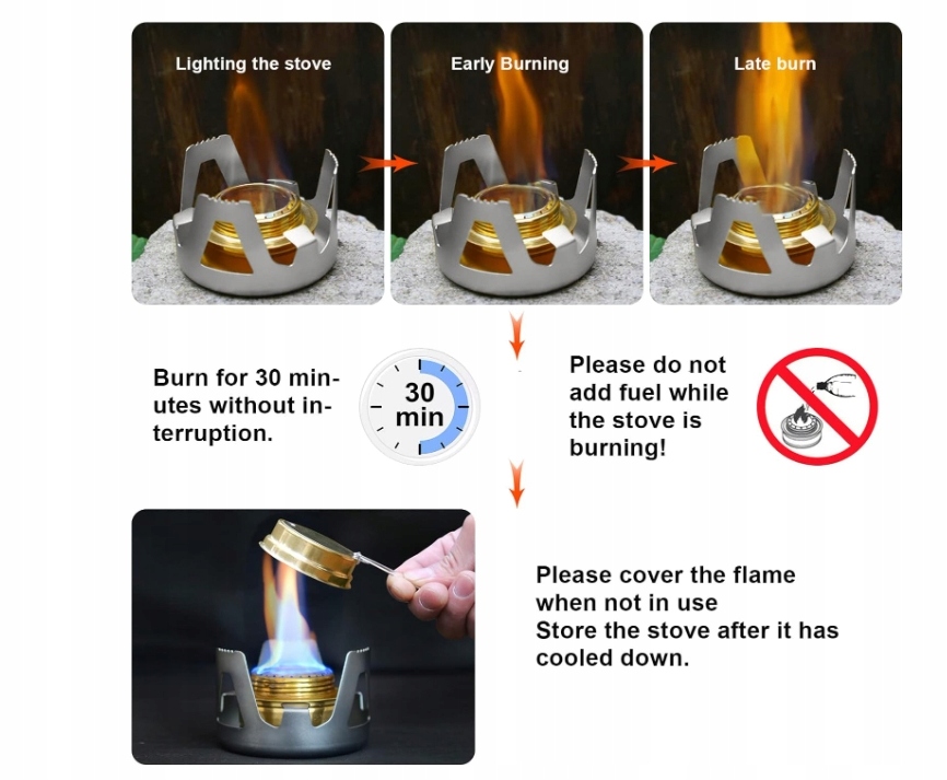 ✔3. Висока ефективність згоряння : навколишні отвори згоряння збільшують вентиляцію повітря для високої ефективності згоряння. Кожні 100 мл етанолу опікують близько 50 хвилин.