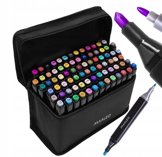 Фломастери різнокольорові у величезному наборі з футляром. Красиві двосторонні маркери - це варіант для позначення важливої інформації, малювання та навчання. Кольорові фломастери в наборі до 80 шт. неодмінно виправдають очікування найвибагливіших людей, яким потрібна широка палітра кольорів, ефективність і якість вище середнього.
