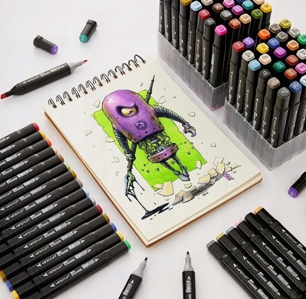 Набір із 168 штук спиртових фломастерів красивих, насичених кольорів! Ідеальна пропозиція для всіх, хто починає свою пригоду з малювання, а також для тих, хто малює щодня. Завдяки пігментації спиртових чорнил кольори легко змішуються, малюнки будуть чіткими і довго не втратять свій колір. Вони ідеально підходять для школи, дому, офісу тощо.