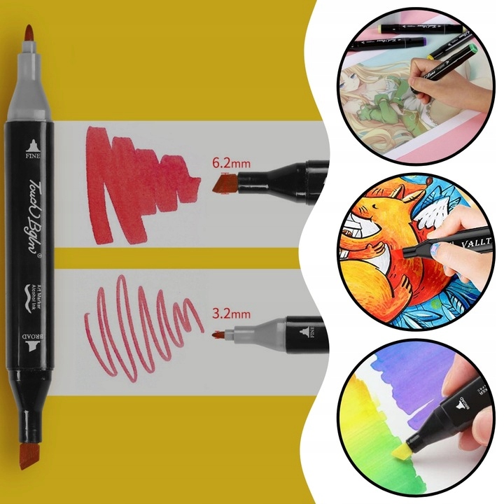 Вам більше не потрібно вибирати між точністю та швидкістю - наші ефективні ручки з двома різними наконечниками є ідеальним рішенням для кожного художника. Круглий наконечник дозволяє створювати тонкі лінії, писати та виділяти, тоді як похилий наконечник дає змогу малювати товстіші лінії, розфарбовувати та виділяти швидше. Завдяки цьому ви можете створювати ескізи різної товщини без необхідності змінювати інструмент. Наші ручки ідеально підходять як для початківців, так і для досвідчених художників, які цінують якість і продуктивність. Виберіть наші маркери та відкрийте для себе нові можливості малювання!