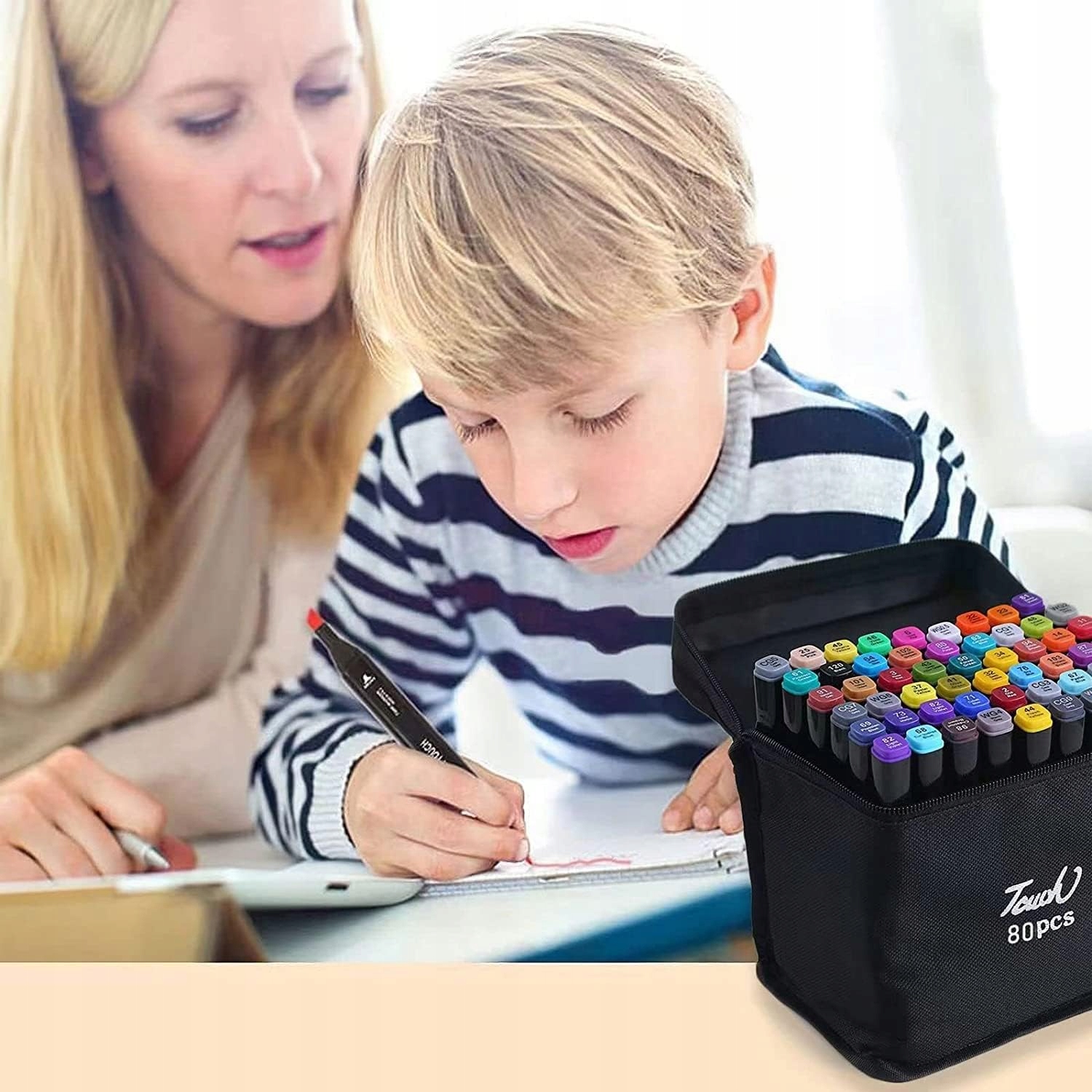 Набір із 80 маркери упаковані в естетичний футляр з м'якого матеріалу, який полегшує зберігання, що робить нашу пропозицію ідеальною в якості подарунка! Порадуйте себе або когось, хто любить малювати!
