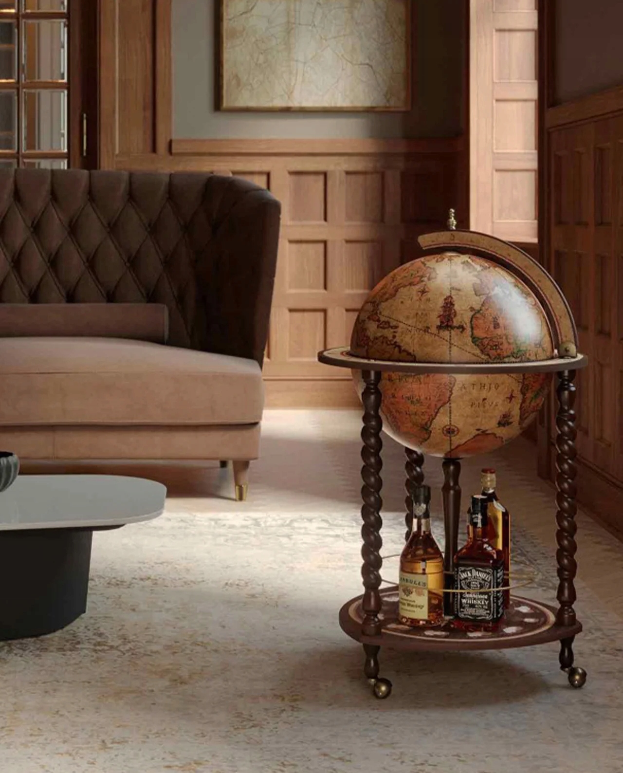Елегантний об’єкт із чудовим стилем, який підходить як для класичного, так і для сучасного оточення: елемент меблів, який ніколи не буде несподіваним, даруватиме комфорт і тепло у вашому просторі. Глобус для тих, хто любить ризикувати, здатний перетворити ваш дім на місце, яке розповідає про вас, вашу особистість і ваші пристрасті.
