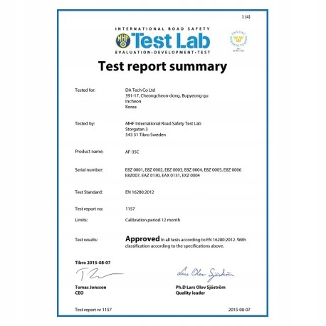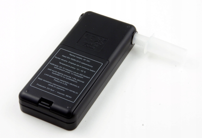 АЛКОТЕЛЯЗЕР З ЄВРОПЕЙСЬКИМ СХВАЛЕННЯМ EN-16280! Електрохімічний алкотестер AlcoFind AF-35C - новий передовий вимірювальний прилад від корейського виробника DaTech. Його головною перевагою є те, що він оснащений електрохімічним сенсором зі стабільною роботою, що підтверджено європейським сертифікатом стандарту EN-16280. Його сучасний зовнішній вигляд і покращена функціональність означають, що користувачі можуть вважати його одним із найкращих алкотестерів на ринку. Він виконує швидкі вимірювання та має датчик, подібний до того, який використовує ПОЛІЦІЯ у своїх алкотестерах. Алкотестер AF-35C перевіряє вміст видихуваного повітря в діапазоні 0,00-5,00‰. Перед тим, як кожна партія товару від виробника надходить у продаж, алкотестер проходить ретельну перевірку якості, а кожен алкотестер калібрується перед продажем споживачеві. Алкотестер ідеально працює як зручний пристрій для перевірки вмісту видихуваного повітря для окремих користувачів з підвищеними вимогами, але він також успішно використовується на невеликих робочих місцях для моніторингу працівників, установ догляду, шкіл тощо. Це дизайн найкращого корейського виробник алкотестерів DaTech.