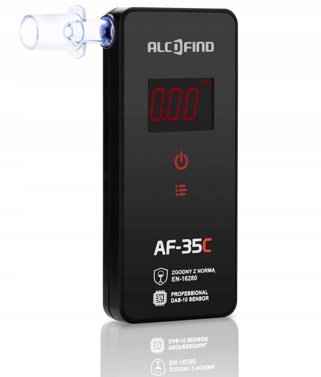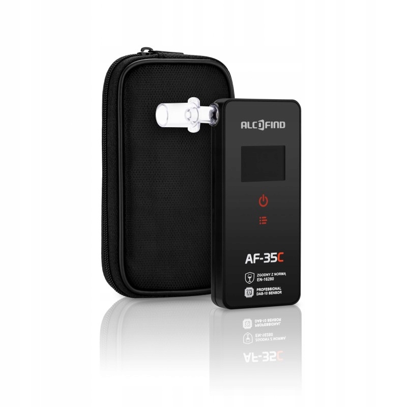Алкотестер AlcoFind AF-35C має вбудований європейський сертифікат EN-16280. Цей корейський алкотестер є передовим приладом, основною перевагою якого є електрохімічний датчик, що підтверджено європейським стандартом EN-16280. Ще однією перевагою є його сучасний зовнішній вигляд і набагато краща функціональність, ніж у попередників, що робить його одним з найсучасніших і найкращих алкотестерів на світовому ринку. Вимірює дуже швидко, вбудований датчик дуже схожий на поліцейський. Алкотестер перевіряє вміст алкоголю у видихуваному повітрі в межах 0,00-5,00‰. Наша компанія є ексклюзивним дистриб'ютором цієї продукції на внутрішньому ринку. Перед введенням в обіг пристрій проходить дуже ретельні випробування та повністю калібрується. Він ідеально підходить як пристрій, який можна брати з собою всюди. Він був адаптований для індивідуальних клієнтів і для невеликих робочих місць, закладів догляду та шкіл. Конструкцію виготовила корейська компанія DaTech.