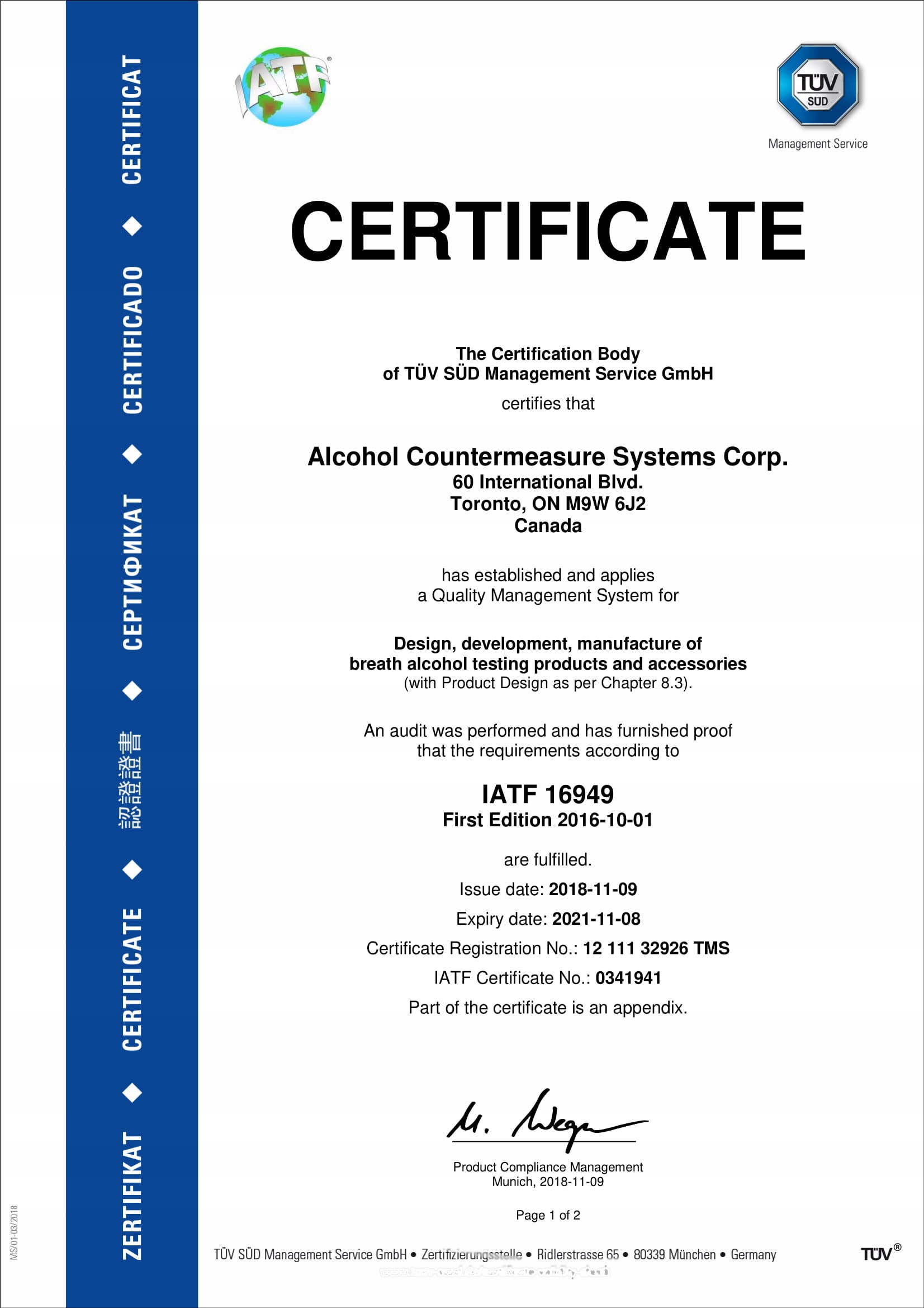 - 12 місяців калібрування алкотестера включено у вартість покупки