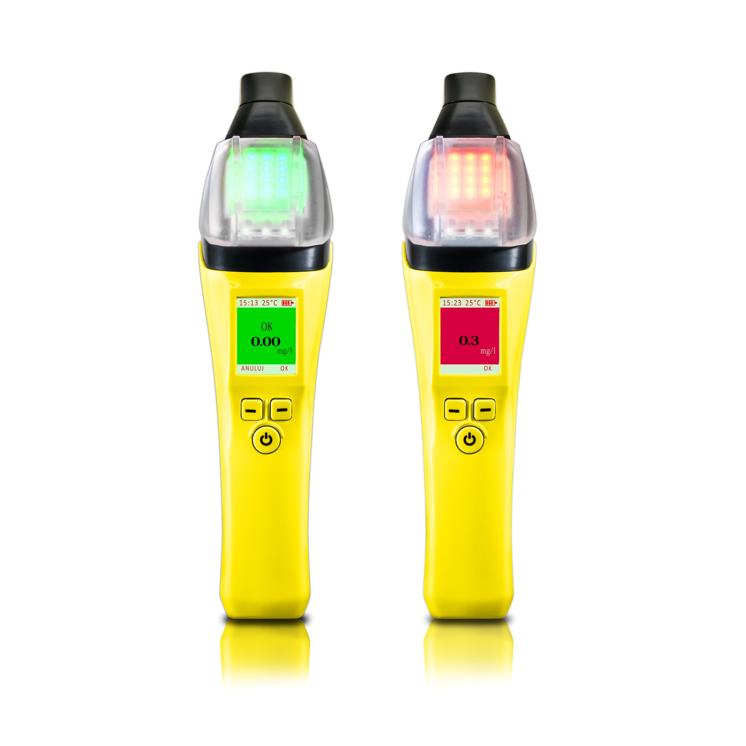 Алкотестер AlcoForce Raptor - це поєднання агресивного зовнішнього вигляду та неймовірної швидкості роботи. Завдяки швидкому сучасному електрохімічному датчику вимірювання займає лише 4 секунди! RAPTOR також є надзвичайно довговічним пристроєм - час безперервної роботи становить до чотирьох годин. Кольоровий рідкокристалічний дисплей інформує про приблизну концентрацію алкоголю у видихуваному повітрі. Коли виявлено алкоголь, загоряється червоний індикатор і світиться РК-екран.