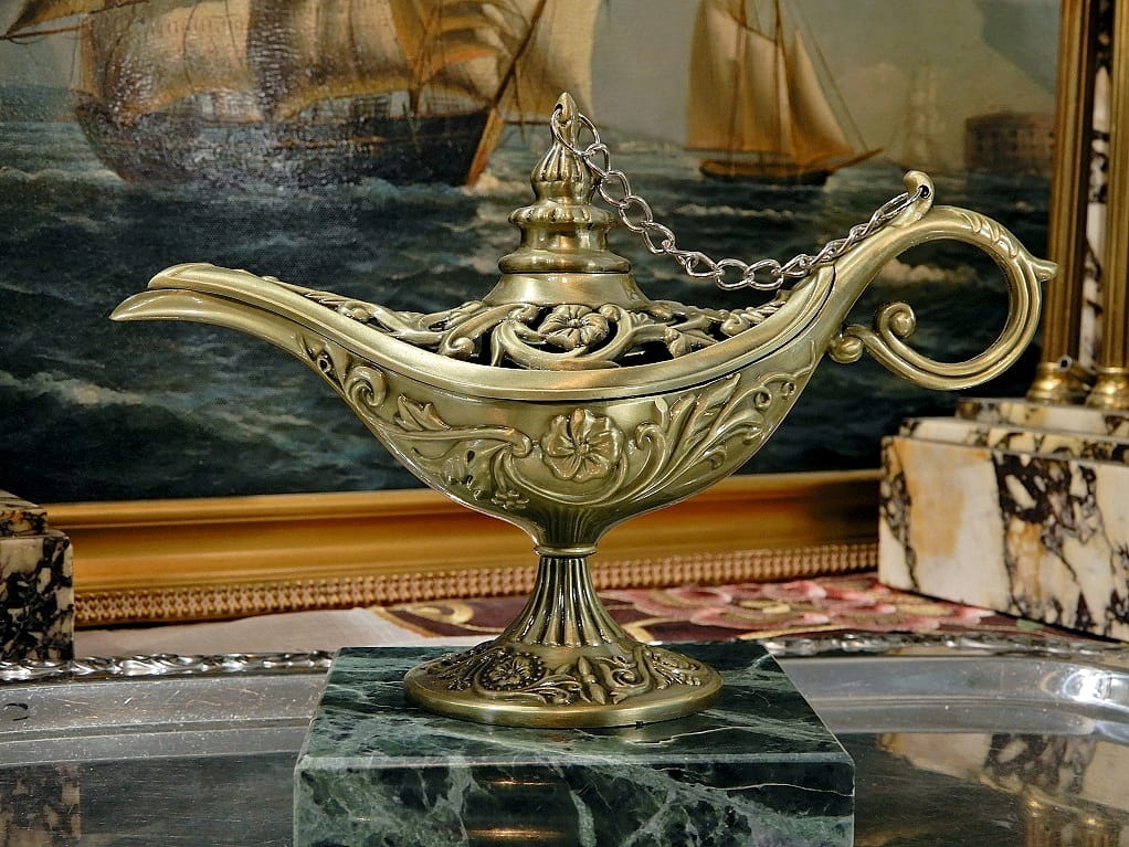 Запрошую придбати чудову лампу Аладдіна. Виготовлена зі сплаву цинку, покрита латунню. Фантастичні рослинні мотиви, ажурні стінки.