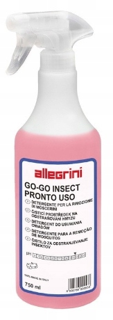 Allegrini GO-GO Insect — готова до використання рідина для видалення комах з лакованих і скляних поверхонь. Дуже ефективно розчиняє хітин. Продукт доступний у двох ємностях: