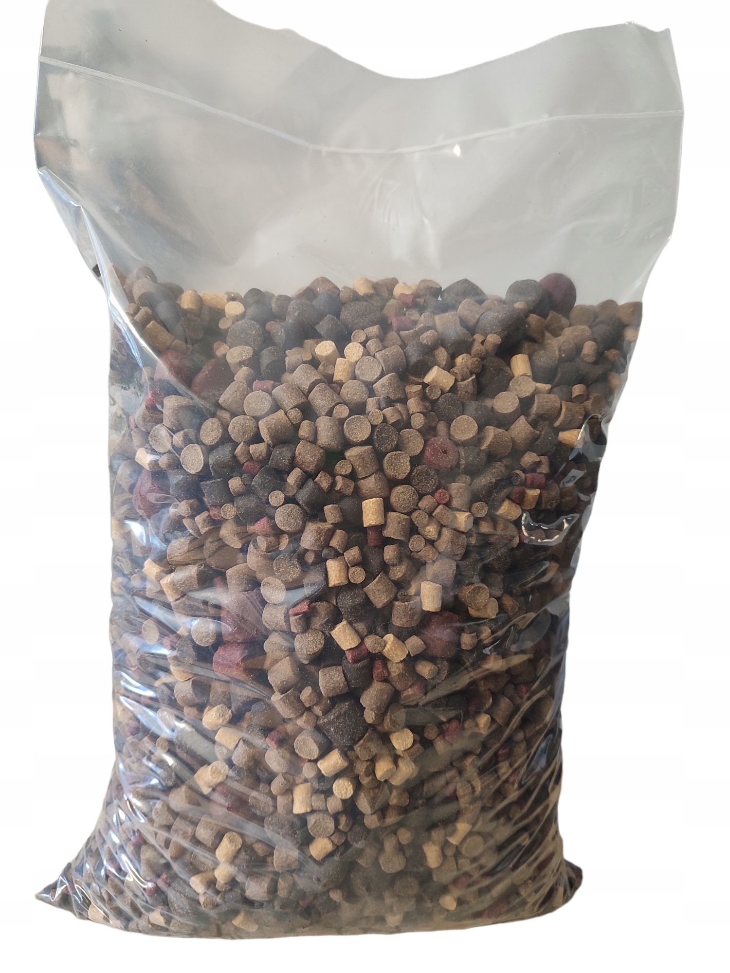 Суміші з пелет з грануляцією від 4,5 мм до 20 мм. Пелети різної грануляції чудово працюватимуть протягом кількох годин у воді.