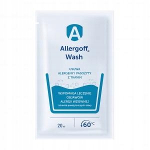 Allergoff ® Wash, добавка для прання при низькій температурі, видаляє алергени (включаючи пилових кліщів) і сприяє фізичному видаленню паразитів, присутніх на тканинах (бліх, кліщів, вошей, клопів) при температурах нижче 60°C. Підтримує лікування симптомів інгаляційної алергії та інфекцій корости та демодекс. Також рекомендується для миття лежаків тварин.