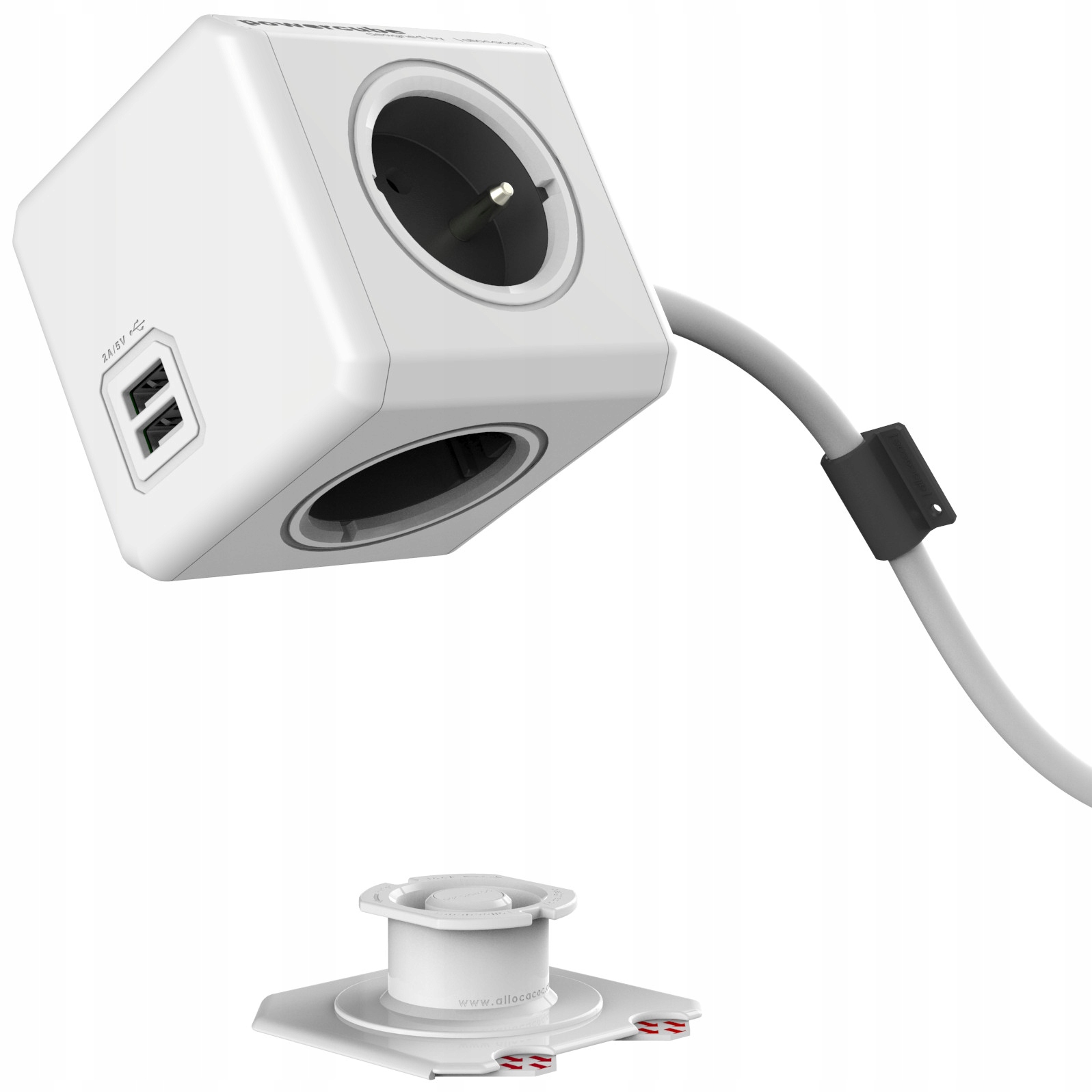 Allocacoc PowerCube 4 зупиняє розміщення Streps 4 шкарпетки з двома портами в сірому кольорі, 3 -метровим кабелем