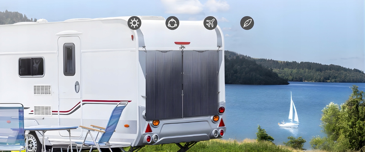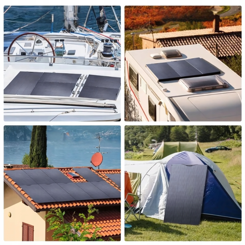 Гнучка конструкція дозволяє встановлювати в місцях, де традиційні панелі занадто жорсткі або важкі - ідеально підходить для човнів, кемперів, причепів, дахів із нерівними поверхнями або мобільних установок. Панель важить набагато менше класичних модулів і її легко транспортувати та зберігати.