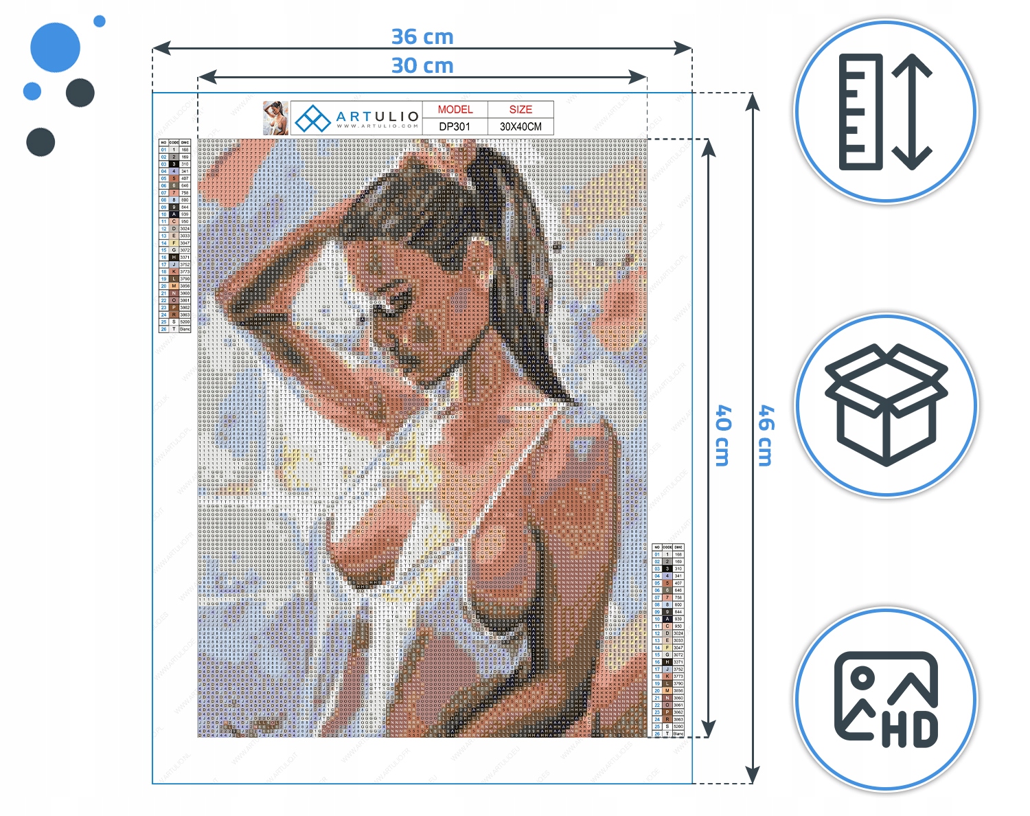Обираючи набір для алмазної вишивки, звертайте особливу увагу на розміри області наклеювання, а не на розміри всього полотна. Розмір зображення - це найважливіше! - відсутність полів, таблиць і логотипів. Наші описи завжди містять надійні розміри - як схеми, так і полотна!