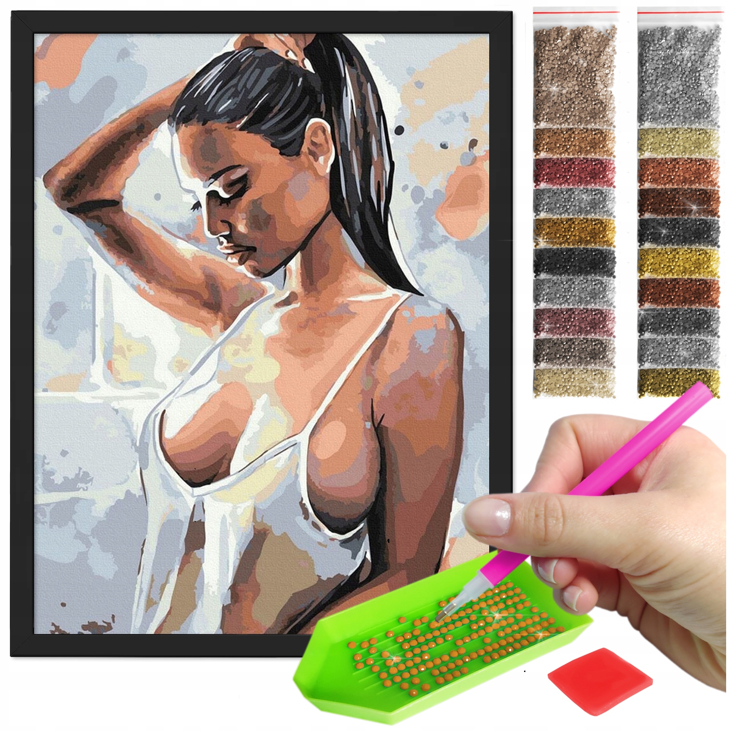Діаманти - їх понад 15 000. У кольорах, що відповідають вибраному зображенню. Кожен відтінок упакований в окремий пакетик і позначений цифрами, щоб компонування було простим і приємним. Набір містить приблизно на 20 відсотків більше кристалів, ніж насправді потрібно. Це на випадок, якщо ви втратите кілька штук :)
