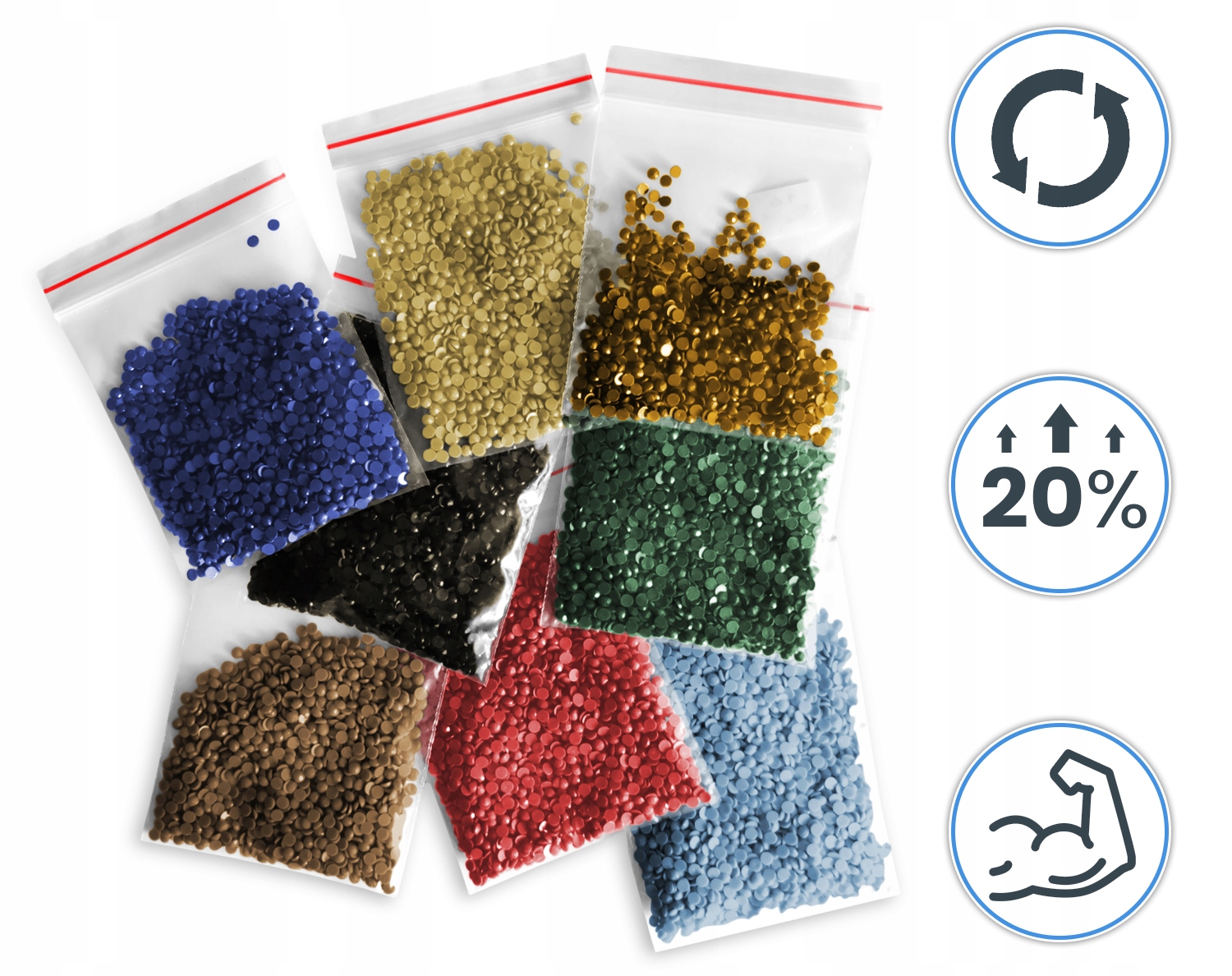 Для виготовлення вишивки використовуються два типи пакетів: термозварені, які можна відкрити лише один раз, і тоді кристали вилітають з них, створюючи непотрібний безлад, і ми використовуємо: сумки-нитки, які можна нескінченно відкривати і закривати! Якому ви віддаєте перевагу?