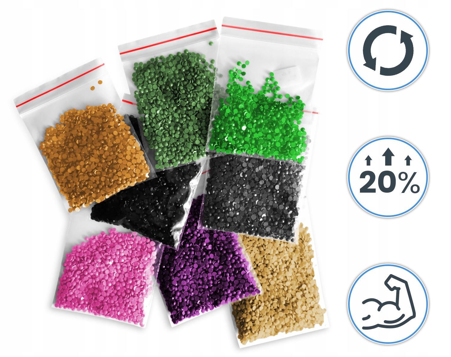 Діаманти - їх майже 15 тисяч. У кольорах, що відповідають обраному малюнку. Кожен відтінок упакований в окремий пакетик і позначений цифрами, щоб компонування було простим і приємним. Набір містить приблизно на 20 відсотків більше кристалів, ніж насправді потрібно. Це на випадок, якщо ви втратите кілька штук :)