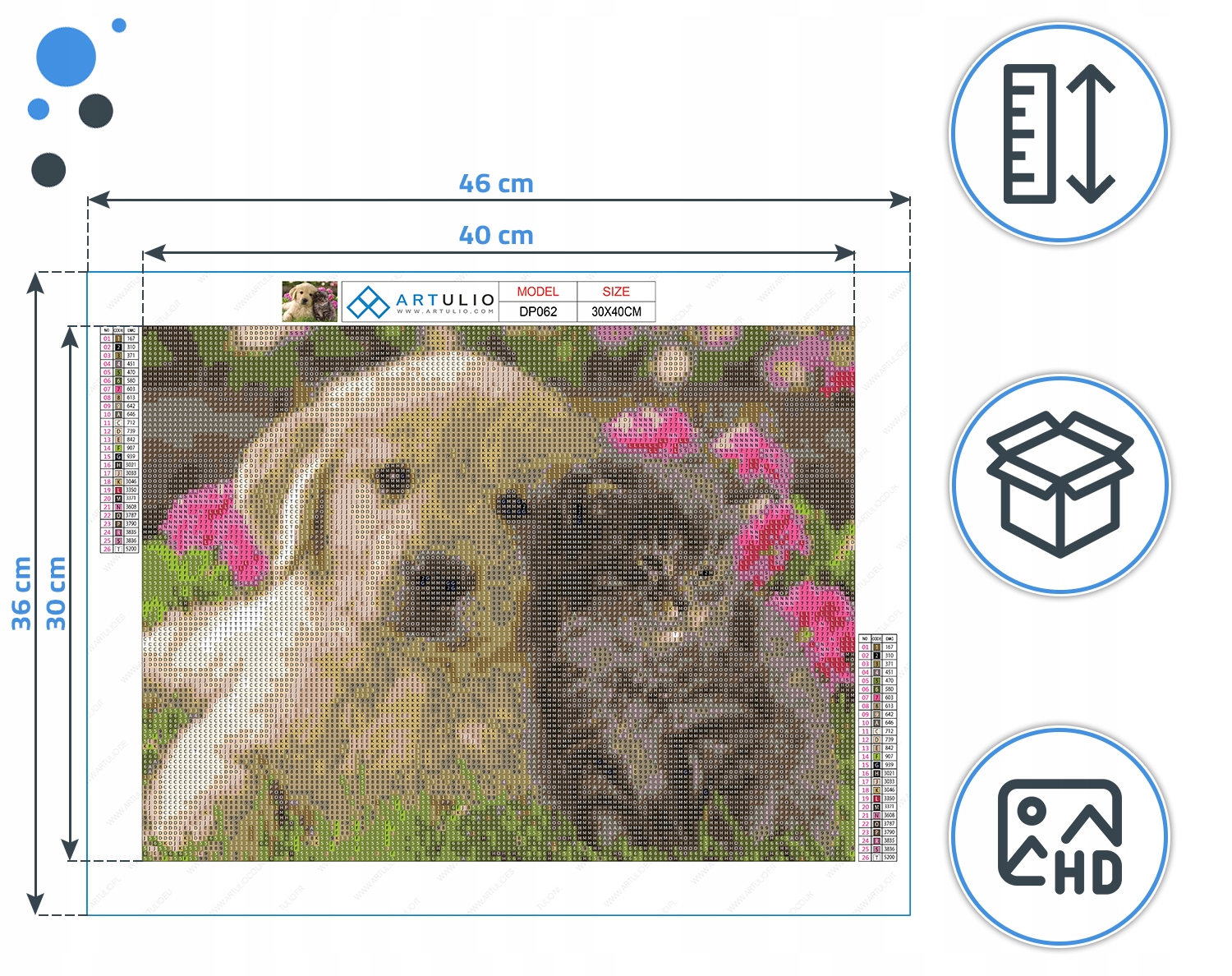 Обираючи набір для алмазної вишивки, звертайте особливу увагу на розміри області наклеювання, а не на розміри всього полотна. Розмір зображення - це найважливіше! - відсутність полів, таблиць і логотипів. Наші описи завжди містять надійні розміри - як схеми, так і полотна!