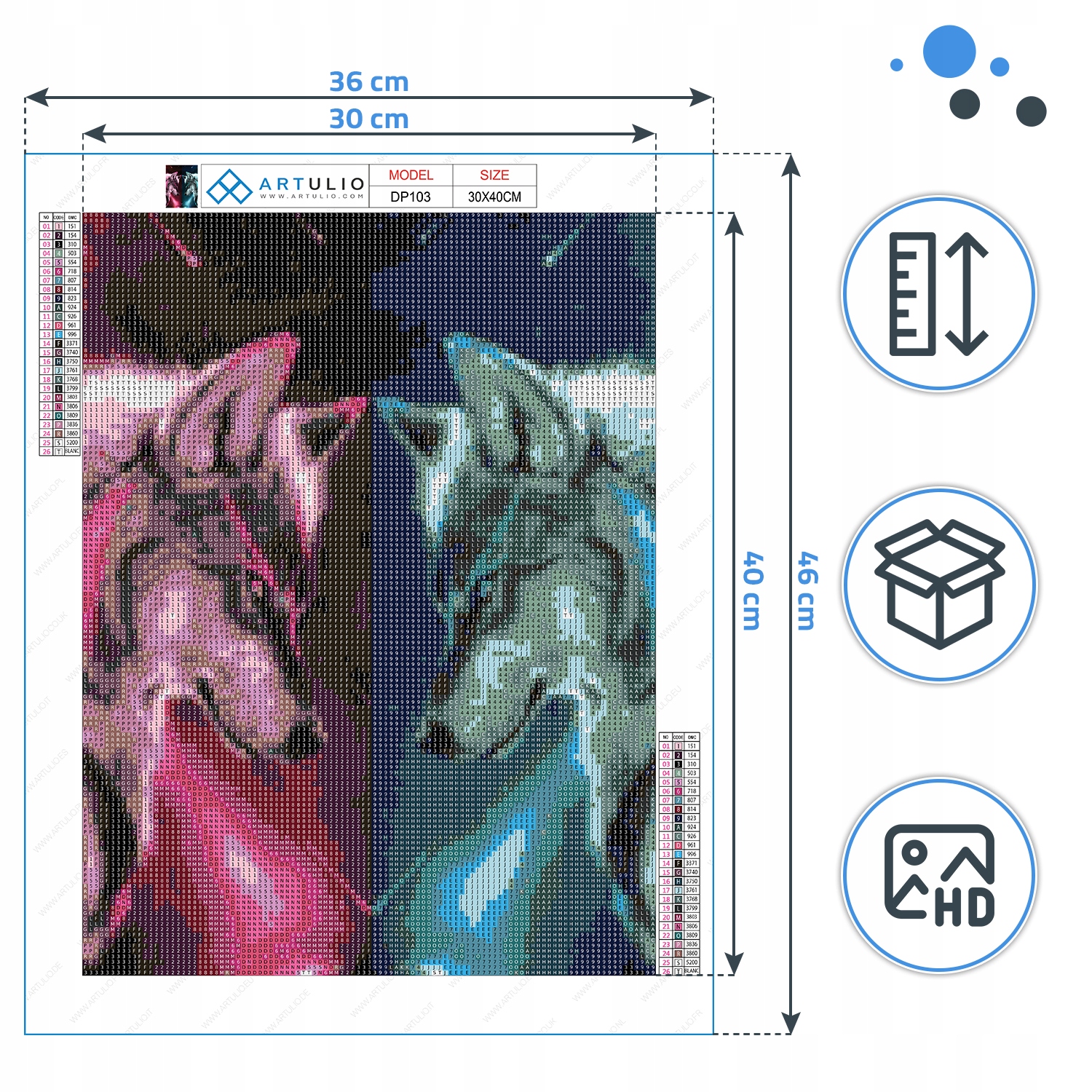 Обираючи набір для алмазної вишивки, звертайте особливу увагу на розміри області наклеювання, а не на розміри всього полотна. Розмір зображення - це найважливіше! - відсутність полів, таблиць і логотипів. Наші описи завжди містять надійні розміри - як схеми, так і полотна!