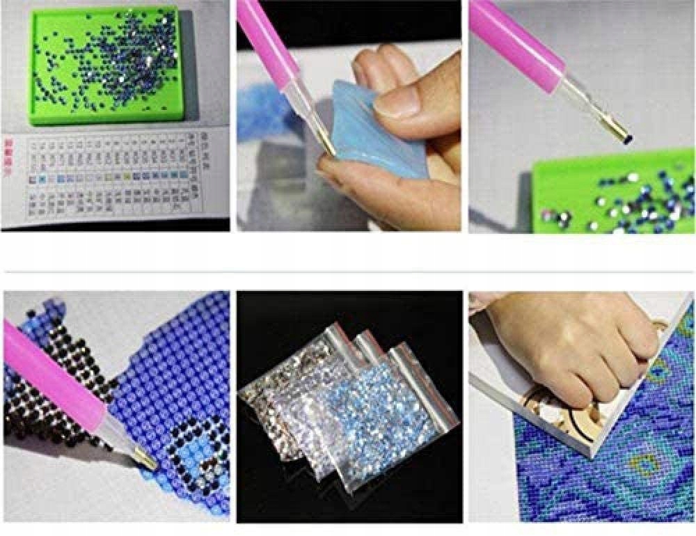 Алмазний живопис - це завдання заповнення готового малюнка дрібними ромбами. Картина намальована частково, заповнювати потрібно лише поля, позначені літерами. Фрагменти бувають різних кольорів, і потрібно кілька годин, щоб створити всю картину, і єдині навички, які вам потрібні, це точність, точність і терпіння.