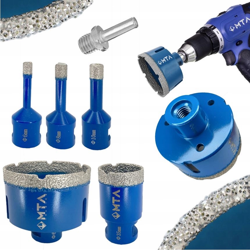 Сенсаційний набір алмазних колодкових пил MTA для кераміки, плитки, кераміки тощо. 6-68 мм 5 ШТ + ПЕРЕХОДНИК M14