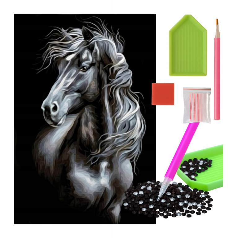АЛМАЗНА МОЗАЇКА Алмазна вишивка Diamond Painting КІНЬ ЧОРНО-БІЛИЙ 5D