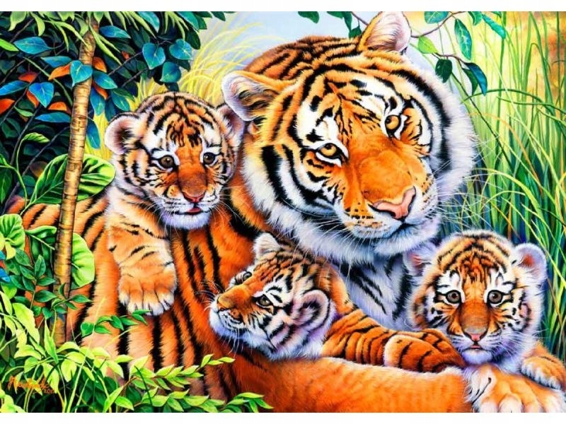 Розмір полотна: 40 х 30 см Візерунок: Тигриця з дитинчатами
