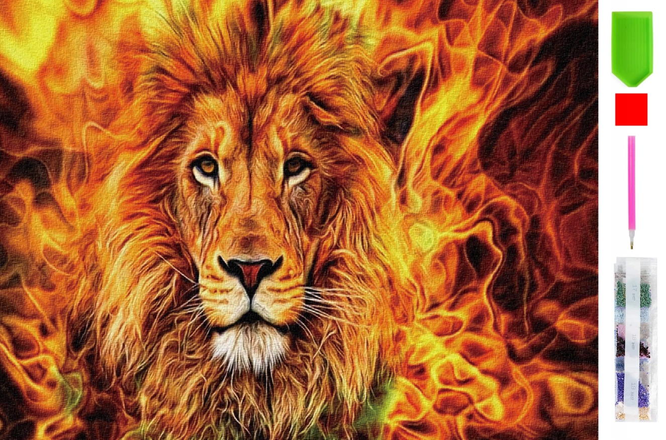 АЛМАЗНА ВИШИВКА Алмазна картина МОЗАЇКА Лев у вогні 30x40 5D DIAMONDS