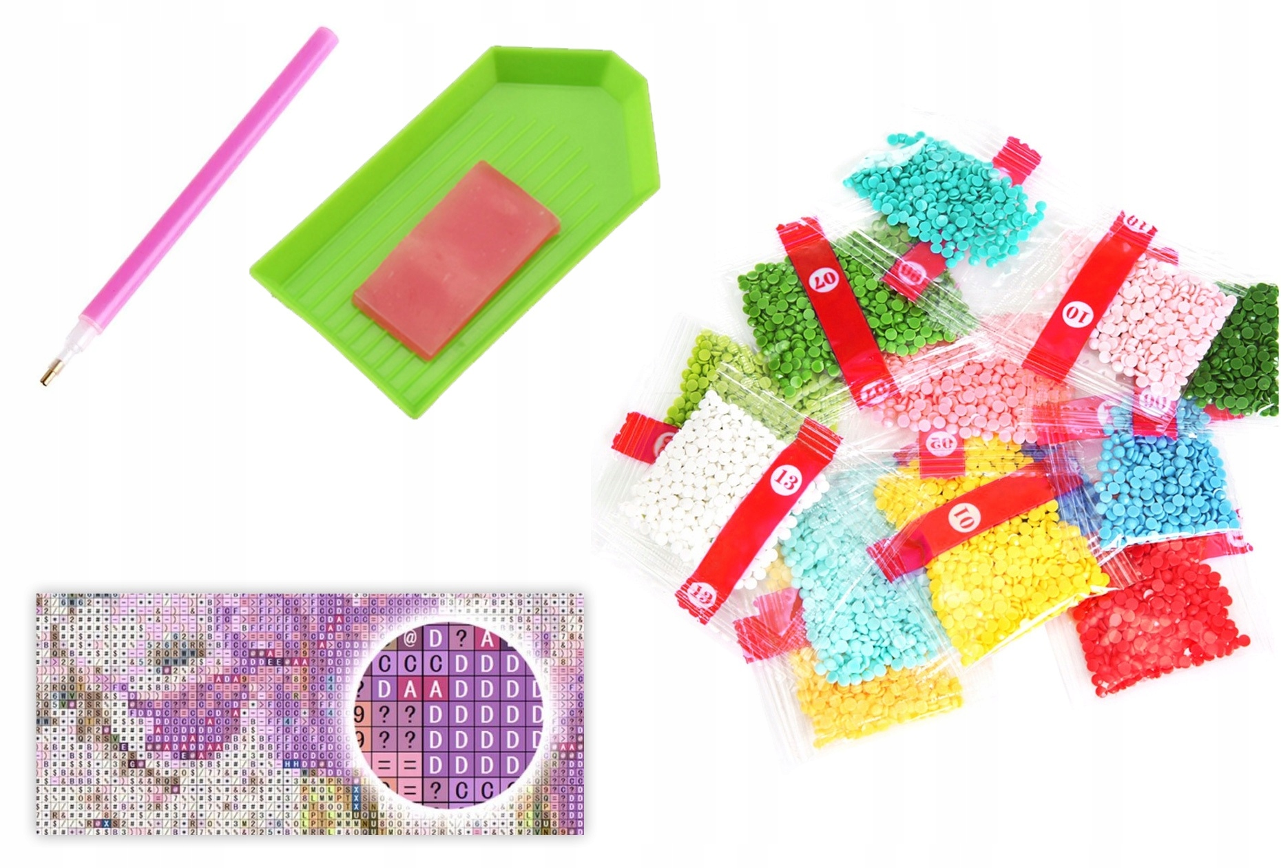 Алмазна вишивка, алмазний живопис, алмазна мозаїка - всі ці назви відносяться до однієї техніки рукоділля, яка полягає в наклеюванні малюнка за допомогою дрібних ромбів і декоративних камінчиків - за отриманим малюнком. Це чудове заняття для зниження стресу, релаксації та релаксації. Процес також впливає на навчання зосередженості, здатність зосереджуватися і підтримувати увагу. Це приносить благополуччя і задоволення. Під час аранжування ми можемо спостерігати, як образ створюється і починає сяяти та сяяти безліччю кольорів та відблисків.